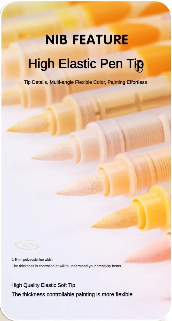 【High-Elasticity Soft Tip】: The markers' high-elasticity soft tips, made of durable nylon fibers, are adept at handling both fine details and broad strokes, enabling a wide range of creative expressions.