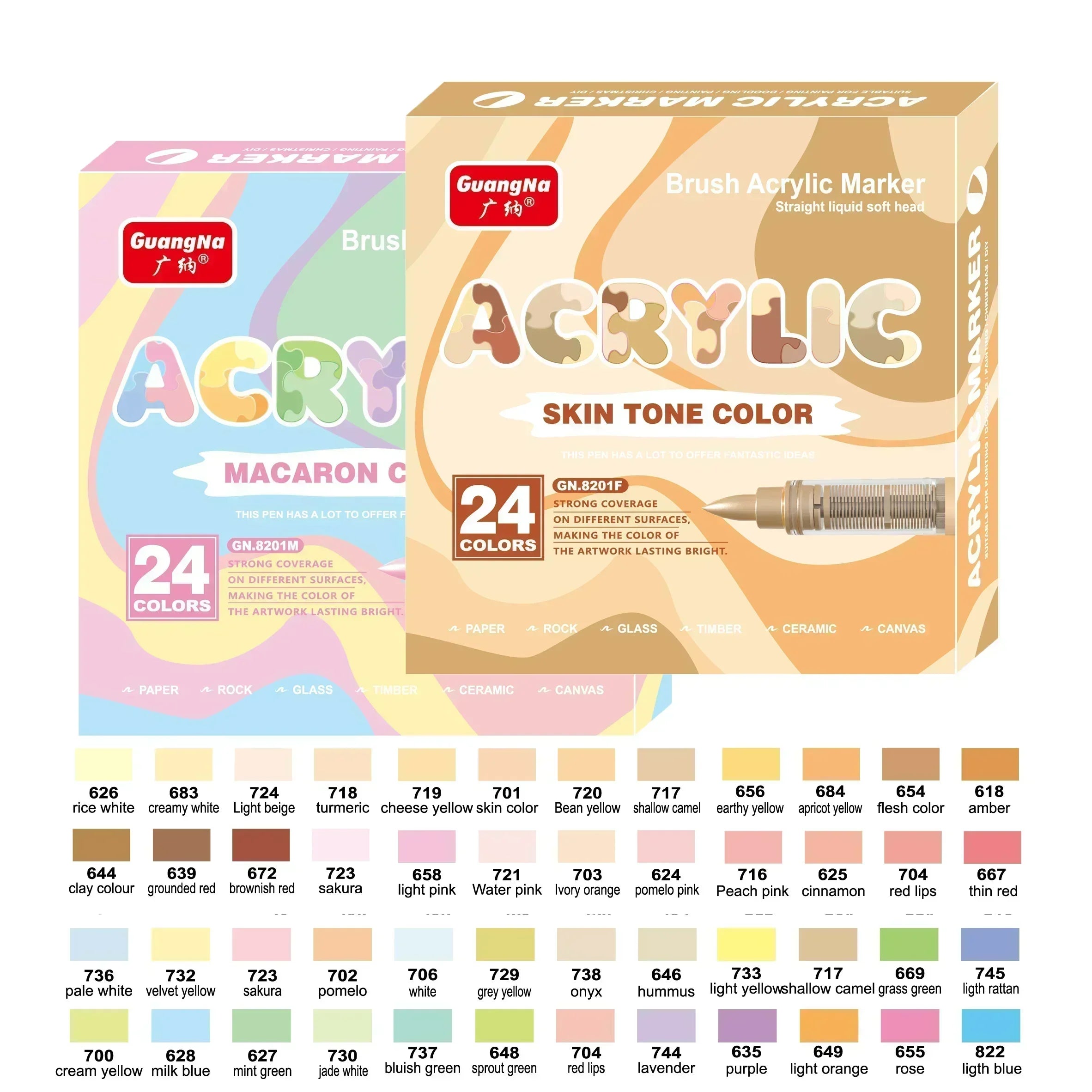 Boasting a rich color palette, the marker offers six different color sets ranging from 12 to 72 colors, catering to a wide range of artistic needs. Whether it's paper, glass, fabric, or other materials, the GN Direct-Ink Acrylic Marker Pen adapts seamlessly, unleashing your creativity beyond material limitations.