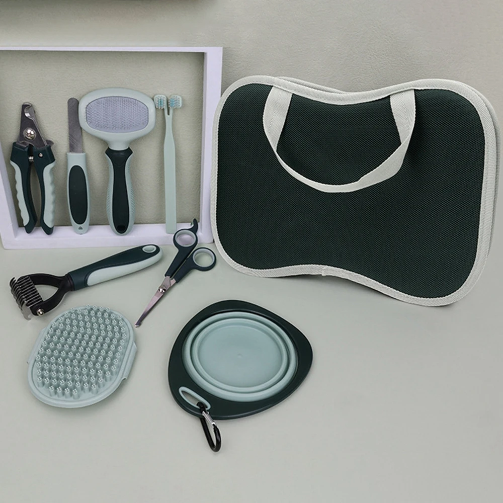 8 in 1 Cat Dog Grooming Comb Set Pet Cleaning Brush Tool Kit Storage Bag Dog Nail Clipper Flea Comb Cat Hair Removal Brush Kits