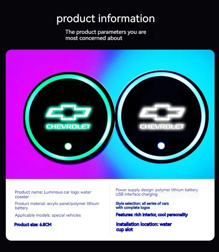 SPECIFICATIONSBrand Name: ChevroletHign-concerned Chemical: NoneItem Type: Atmosphere lampOrigin: Mainland ChinaLed Car Water Cup Mat Drink Holder Auto Interior Decorative LightsDescription:Condition:... Read more