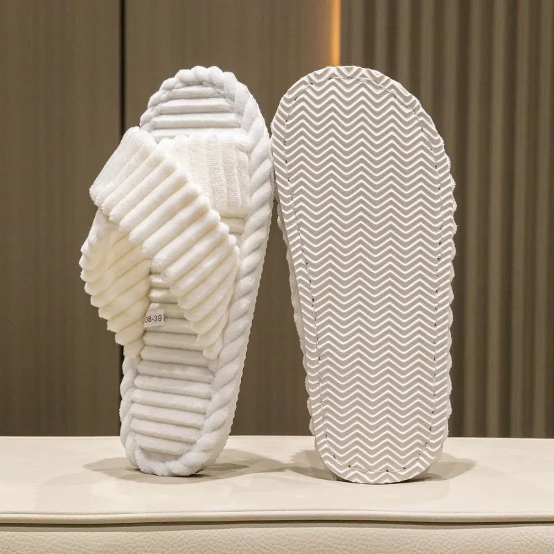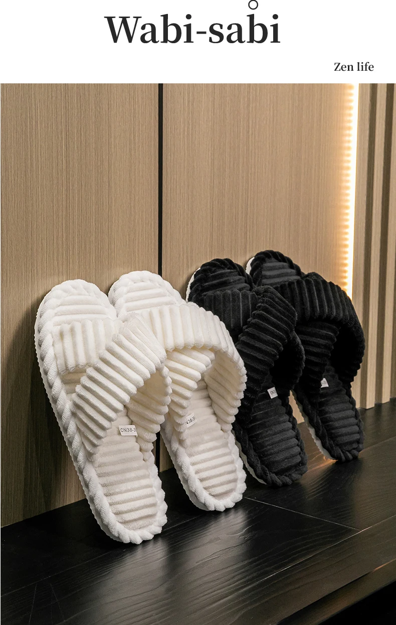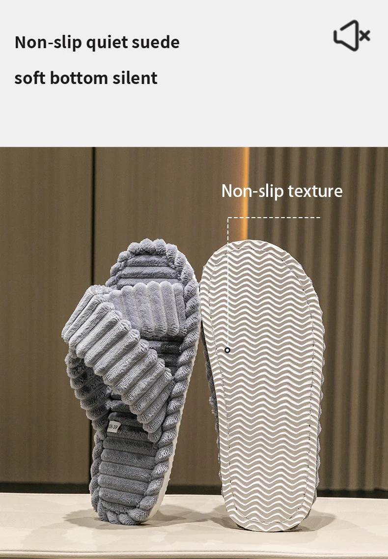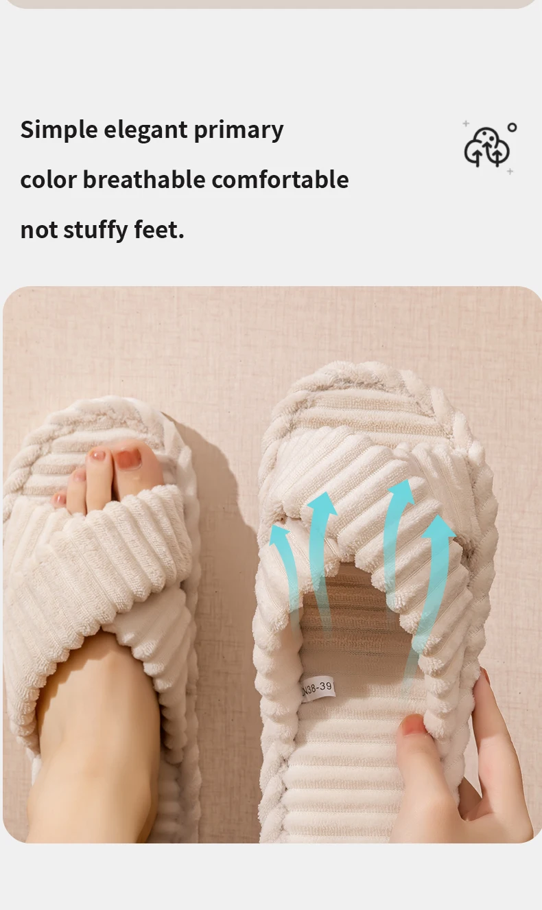 Fashion Corduroy Cross band Open Toe Home Slippers Women Autumn Winter Warm Plush Slides ladies Bedroom Soft Sole Slippers