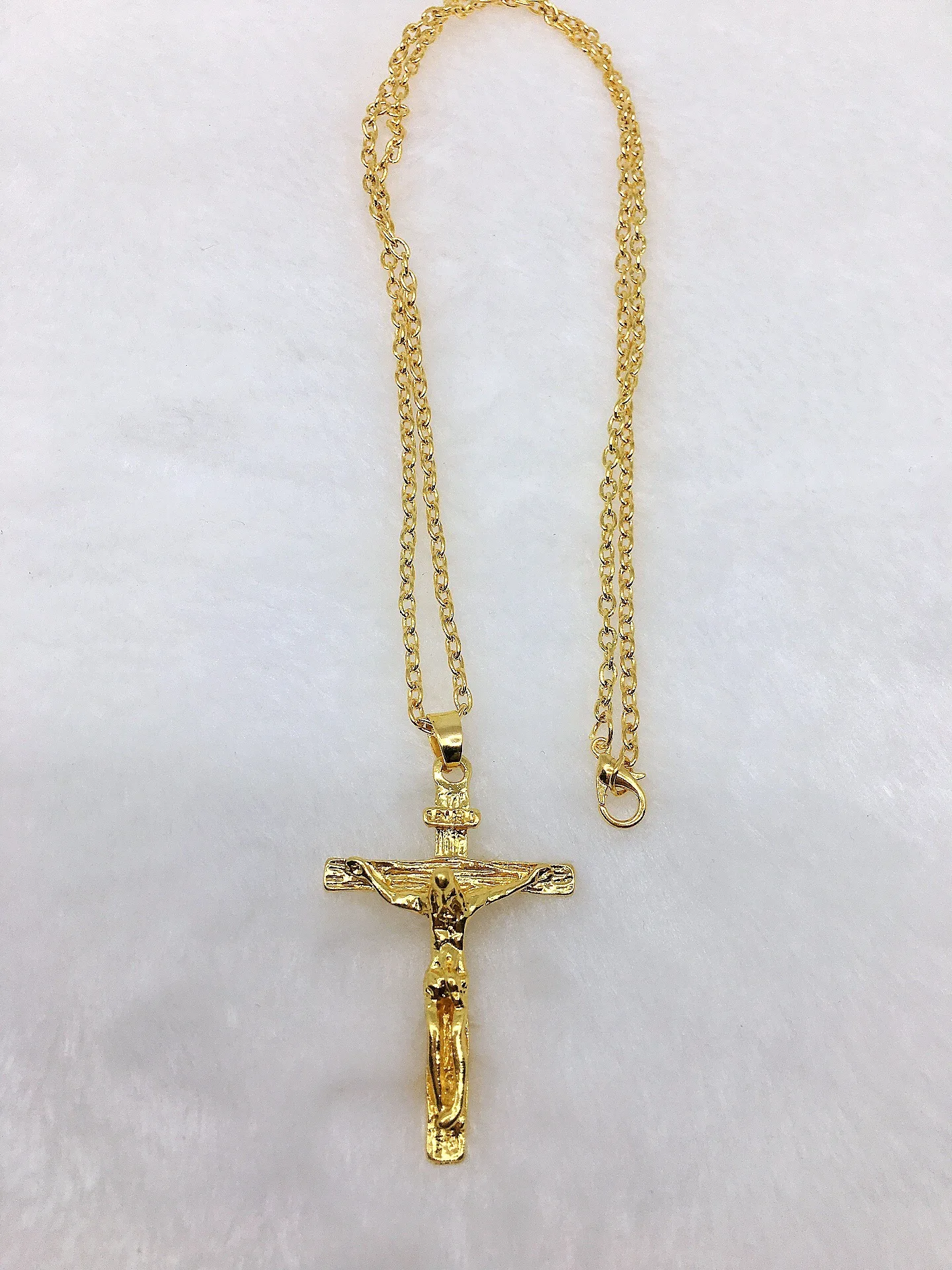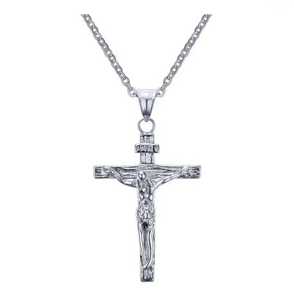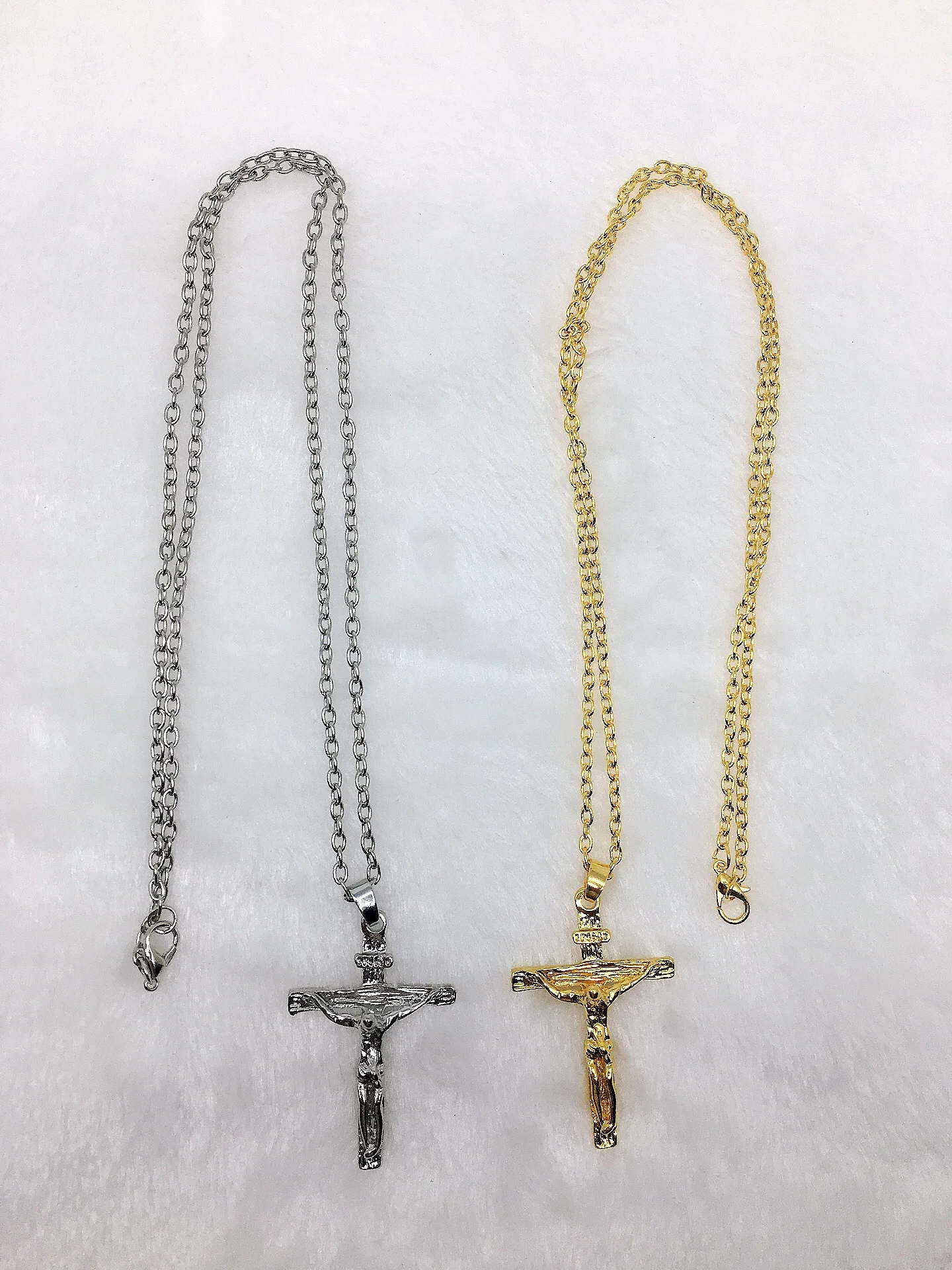 Fashion Crucifix Jesus Christ Men Jewelry Gold Brown Silver Color Metal Cross Pendant With Neck Chain Necklaces For Women