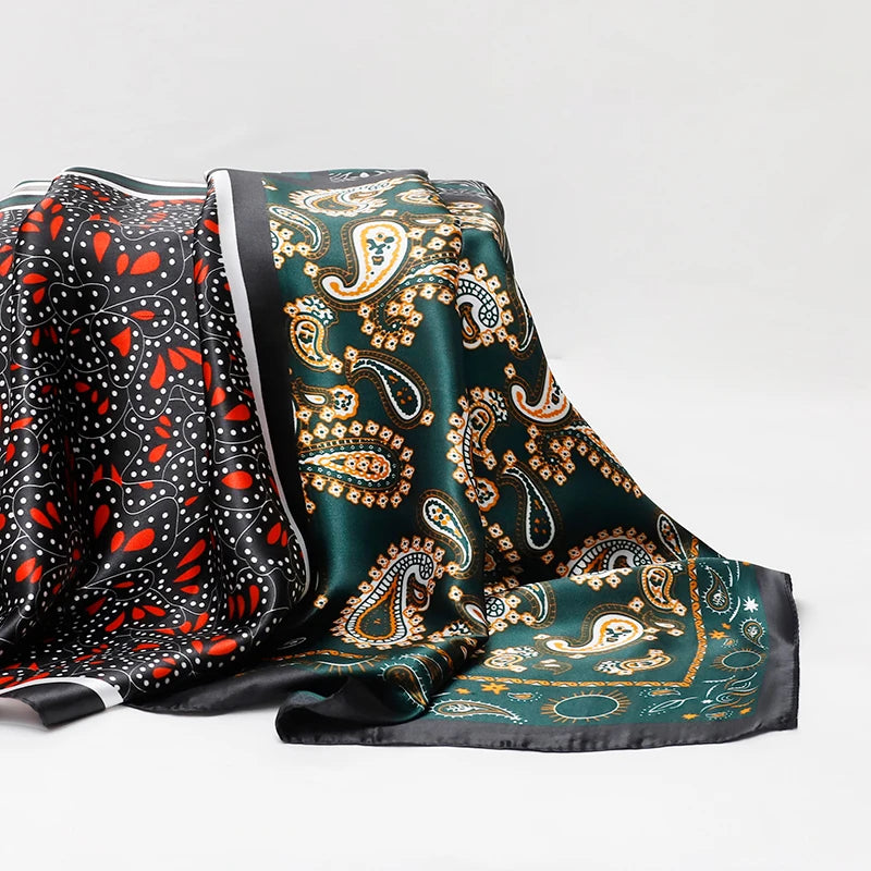 Handkerchiefs Hair Silk Scarf 90*90cm Print Satin Big Square Silk Scarves Shawls for Women Luxury Brand Designer Hijab Headband