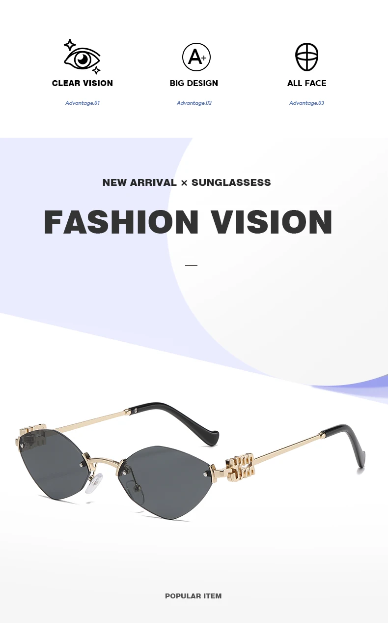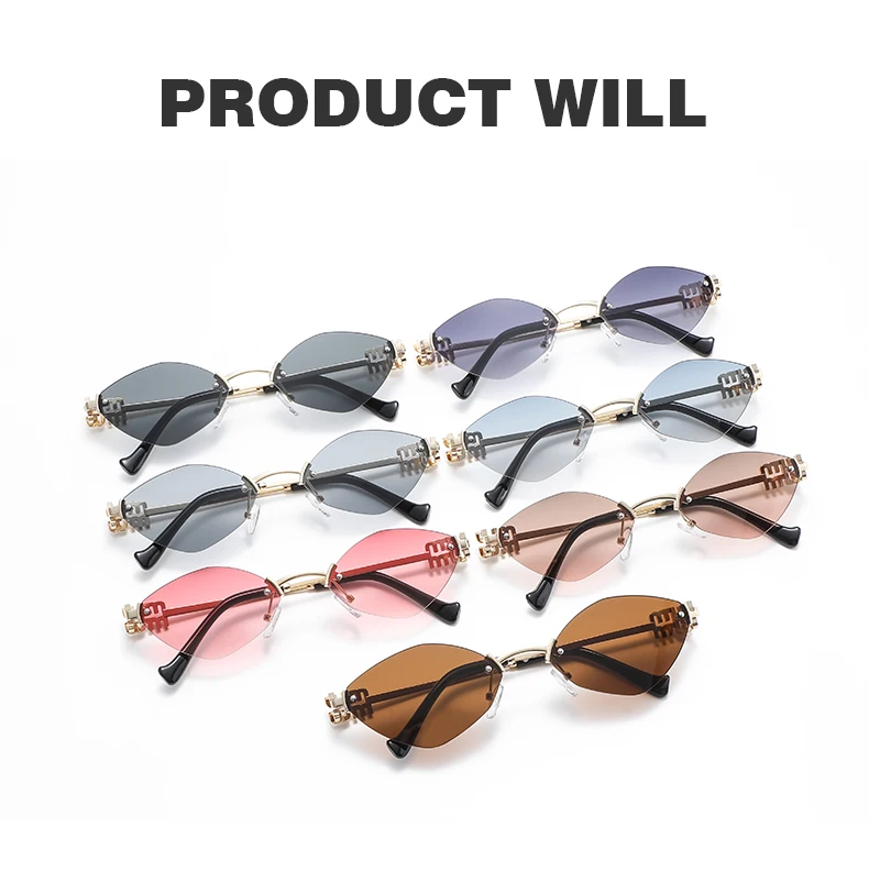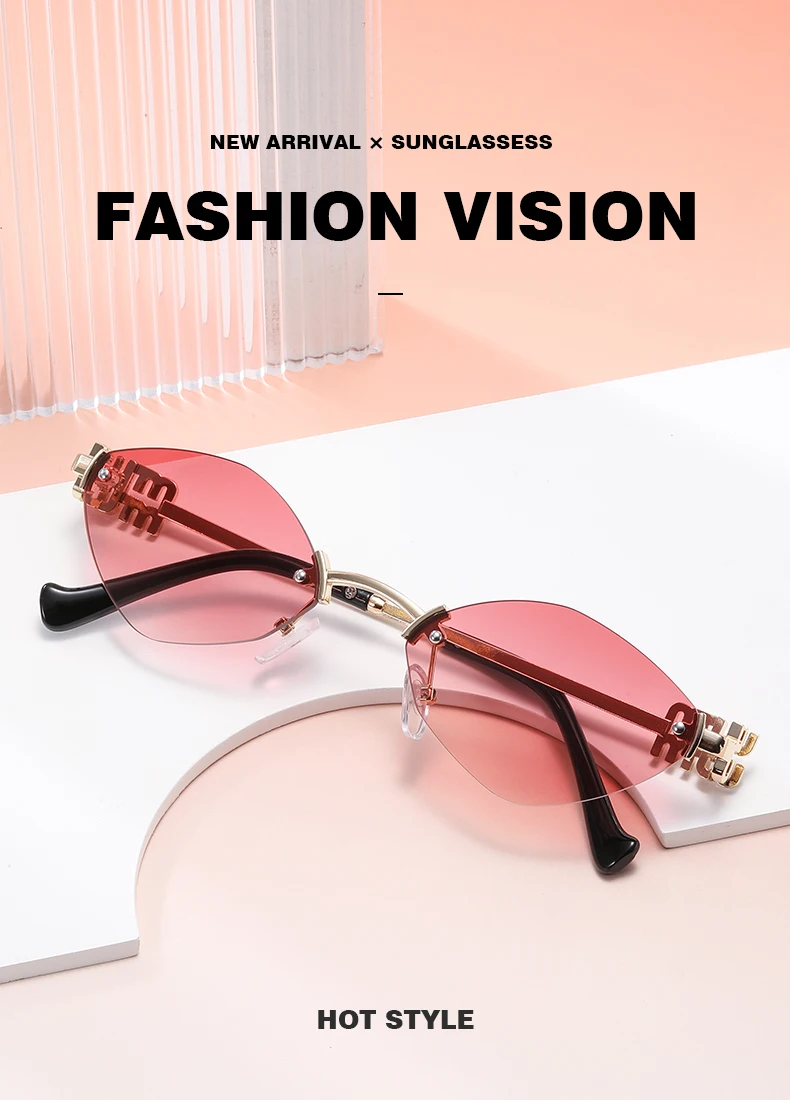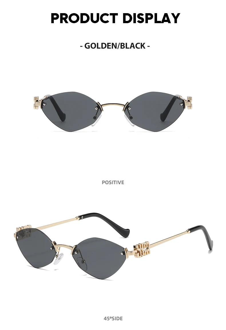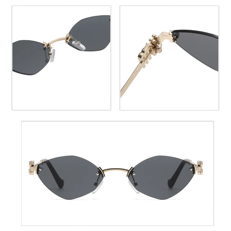 New Fashionable Men Borderless Diamond Shaped Sunglasses High-End Metal Neutral Style Street Sunglasses Uv400
