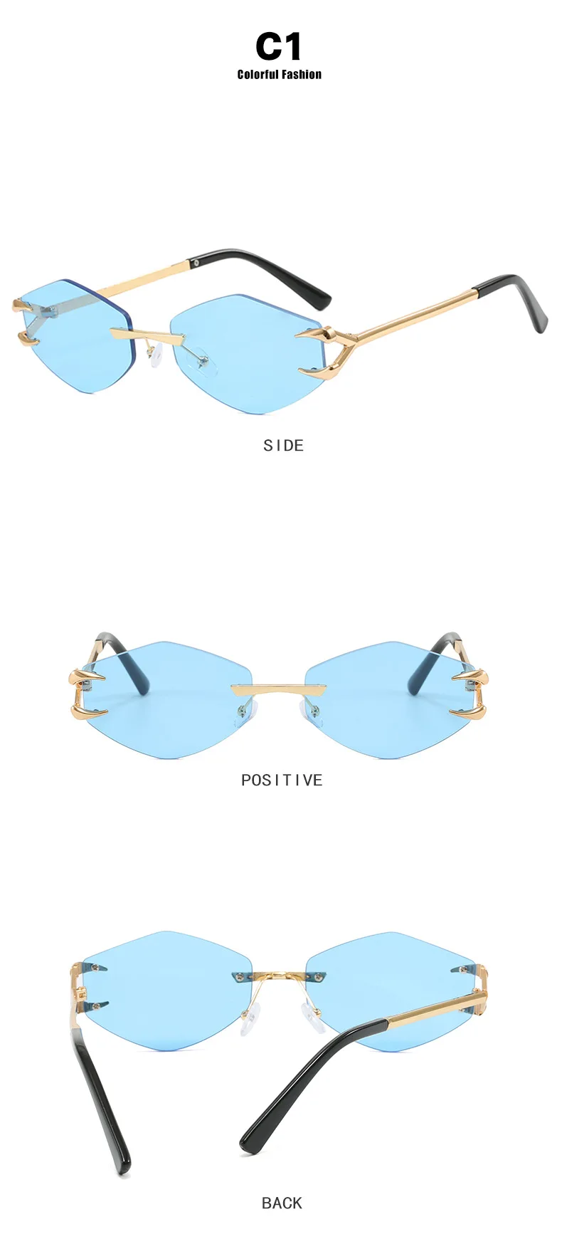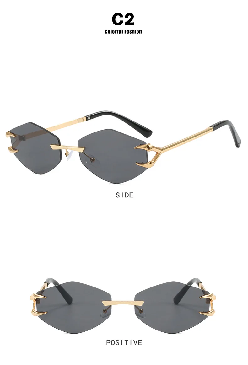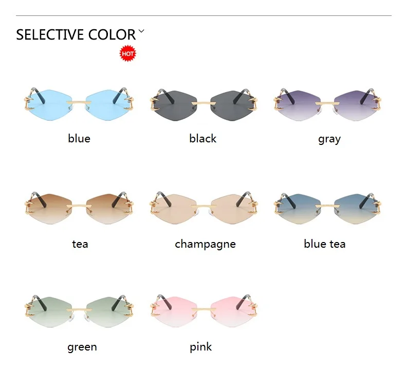 Rimless Diamond Sunglasses Square Women Men Retro Sun Glasses Brand Designer Eyewear UV400 Shades Oculos Female Gafas