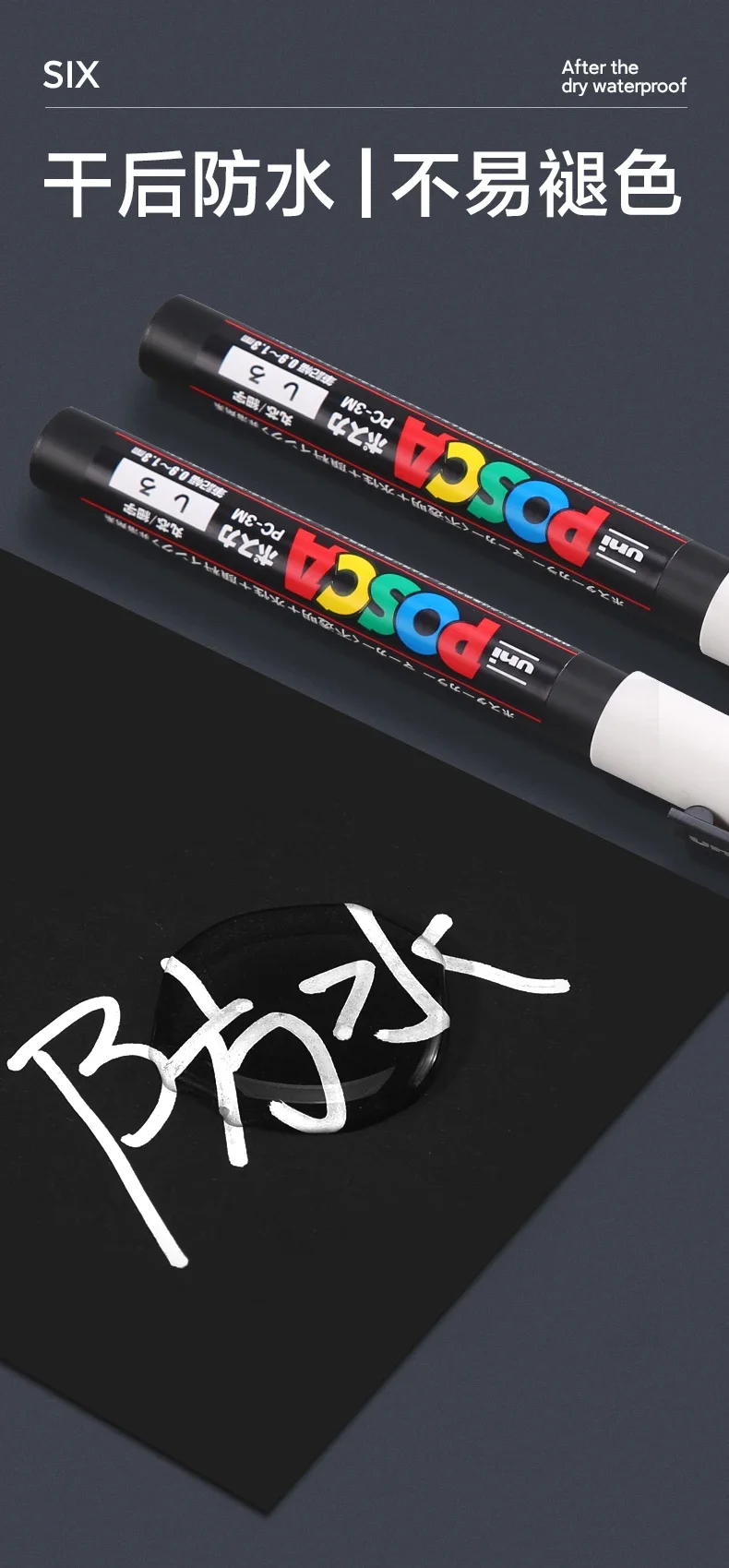 UNI POSCA Markers Set PC-1M/3M/5M Permanent Acrylic Paint Pen Quick Dry Graffiti Painting Art Supplies Japanese Stationery